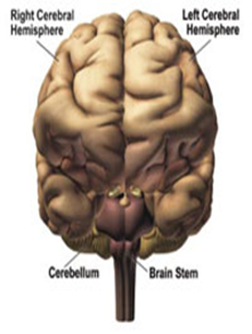 The cerebellum sits above the brainstem and beneath the occipital lobe. It takes up a little more than 10 percent of the brain. This part of the brain plays a role in balance and coordination. The cerebellum has two hemispheres, which receive information from the eyes, ears, muscles, and joints about the body’s movements and position. Once the cerebellum processes that information, it sends instructions to the body through the rest of the brain and spinal cord. The cerebellum’s work allows an individual to move smoothly, maintain balance, and turn around without even thinking about it. It also is involved with motor learning and remembering how to do things like drive a car or write one’s name.